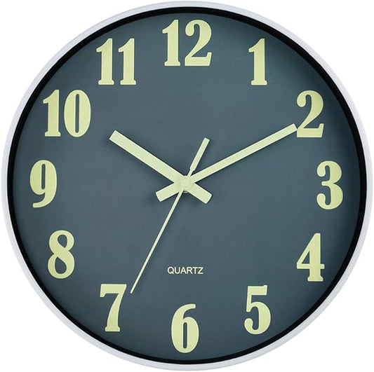JoFomp Glow in The Dark Clock, 12 Inch Modern Silent Non Ticking Wall Clocks Battery Operated, Night Light Wall Clock for Living Room Decor, Wall Clock Decorative for Kitchen Bedroom (Grey)