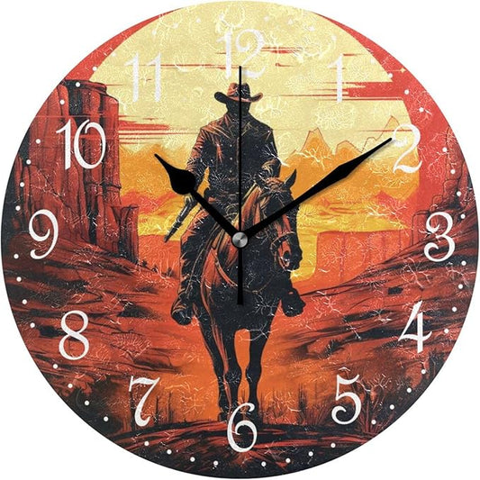 ALAZA Wall Clock Sunset Cowboy Silent Non-Ticking Decorative Wall Clocks Battery Operated 10 Inch for Home Living Room Kitchen Bathroom Bedroom