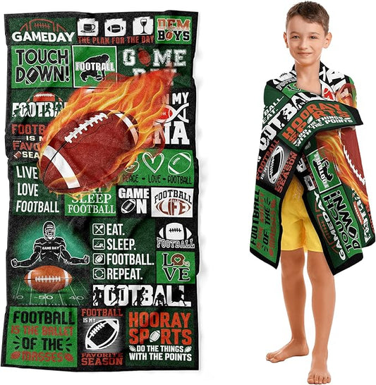 Football Towel for Boys 30" x 60" Microfiber Football Beach Towel for Kids Bath Pool Shower Camping Travel Towel