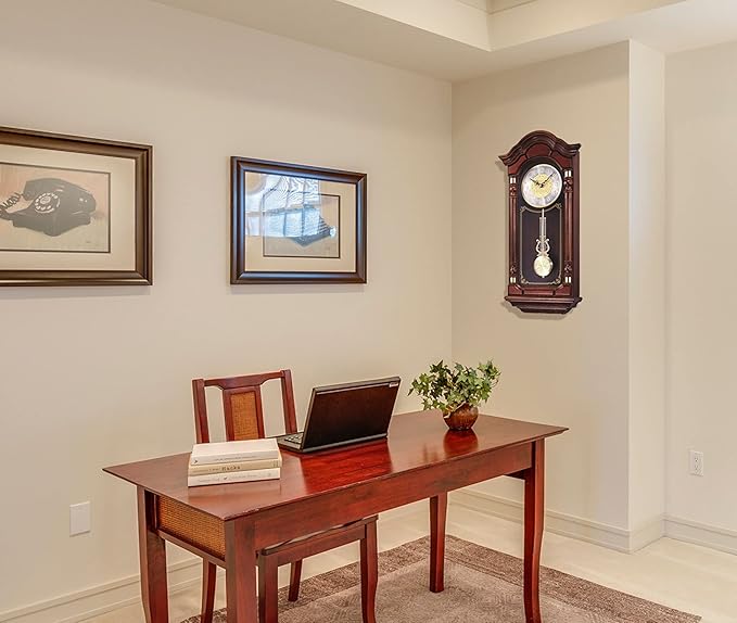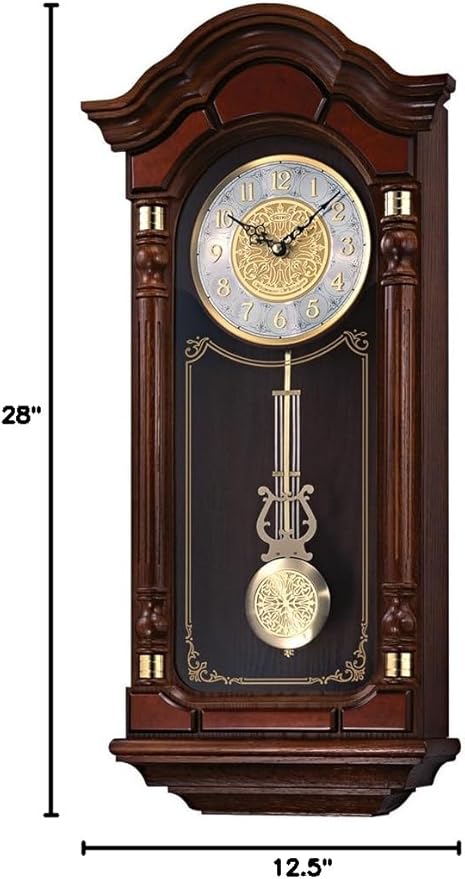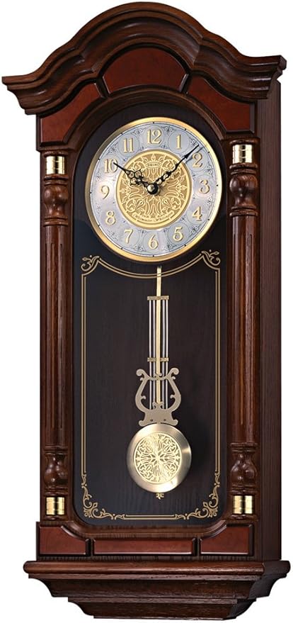 SEIKO Stately Dark Brown Solid Oak Case Wall Clock with Pendulum and Chime