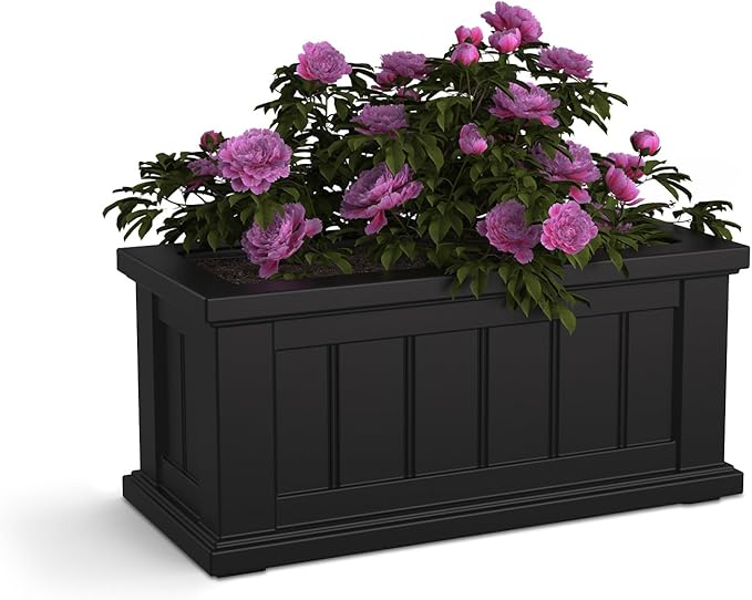 Mayne Cape Cod Rectangle Planter - Black - 24in L x 11in W x 11in D - Polyethylene - Built-in Water Reservoir (4839-B)