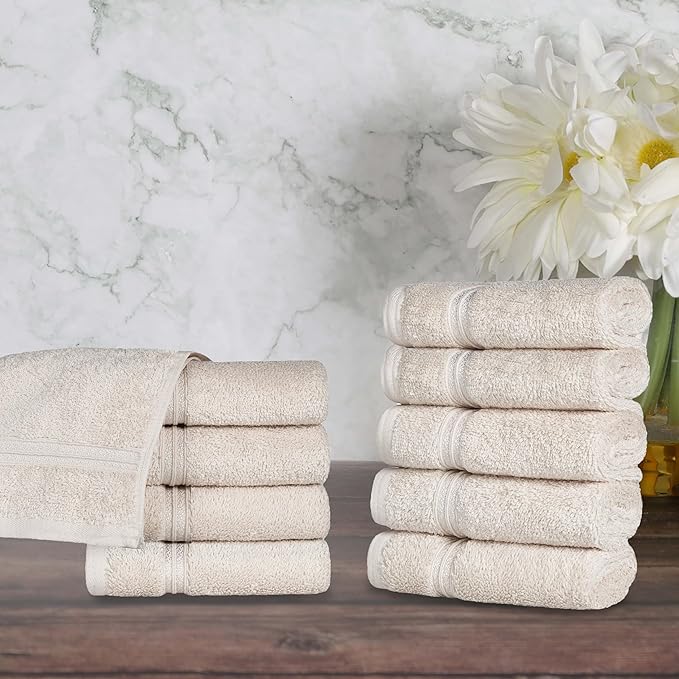 Superior Egyptian Cotton 10-Piece Face Towel Set , Small Towels For Facial, Spa, Quick Dry, Absorbent Towels, Bathroom Accessories, Guest Bath, Home Essentials, Washcloth, Airbnb, Ivory