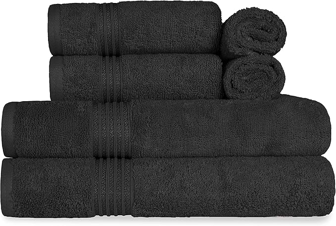 Superior Egyptian Cotton 6-Piece Towel Set, Bathroom Essentials, Towels For Bathroom, Apartment, Airbnb, Guest Bath, Face, Hand, Bath Towels, Washcloths, Absorbent, Fast Drying, Black