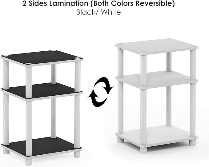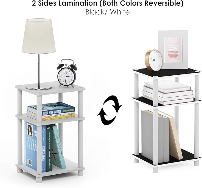 Furinno Just 3-Tier Turn-N-Tube End Table / Side Table / Night Stand / Bedside Table with Plastic Poles, 1-Pack, White(Espresso)/White