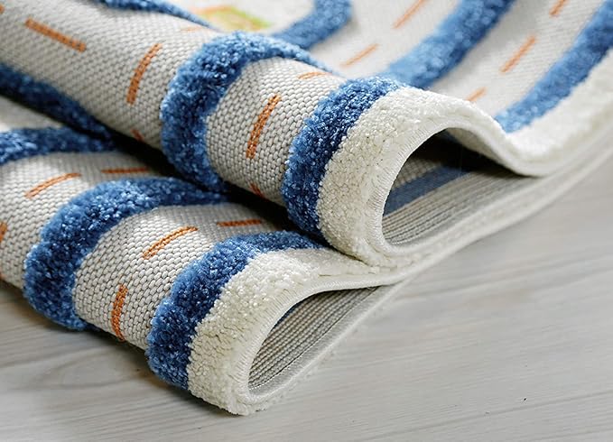 - 3D PLAY MAT: Thick, 3-dimensional quality mat provides a play area for your youngster; Rug features an array of colors and blue borders; Made in Turkey; Material: Polypropylene; Dimensions (L x W): 71 x 52.5 inches; Weight: 12 pounds