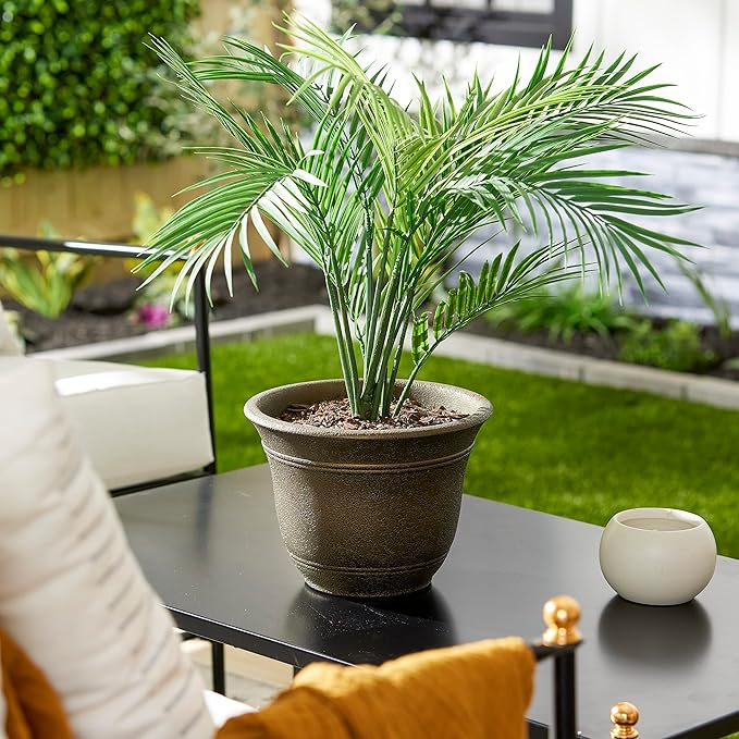- Features a textured surface with the authentic look and texture of a stone flower pot