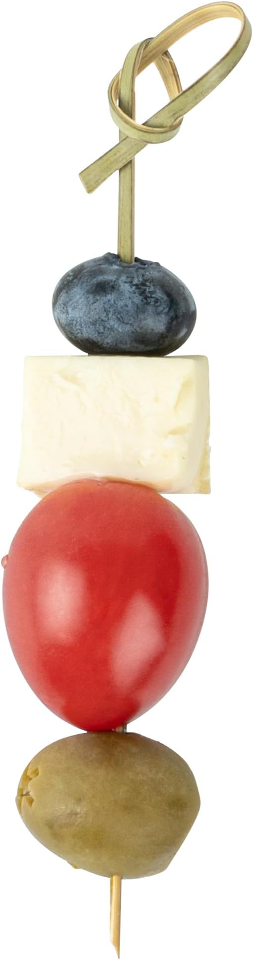 Restaurantware 4 Inch Twisted Bamboo Skewers 1000 Sturdy Disposable Bamboo Food Picks - Sturdy Looped Knot Bamboo Appetizer Picks Sustainable For Serving Appetizers and Cocktail Garnishes