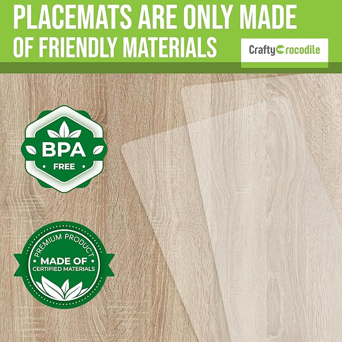 CraftyCrocodile Clear Plastic Placemats Set of 4 - Vinyl Table Protector for Dining, Kitchen, Office, Painting Table, Shelves - Heat Resistant, Crystal Clear, Wipeable Place Mats - 17.5x12
