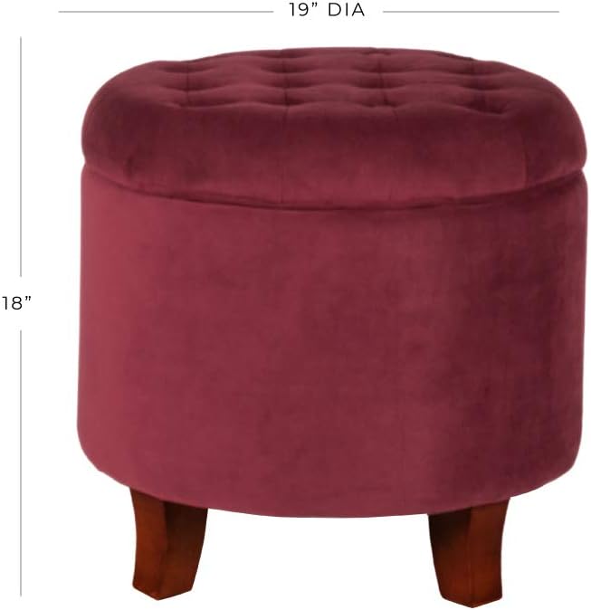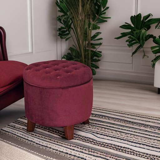 Homepop Home Decor | Upholstered Round Velvet Tufted Foot Rest Ottoman | Ottoman with Storage for Living Room & Bedroom | Decorative Home Furniture, Burgundy Small