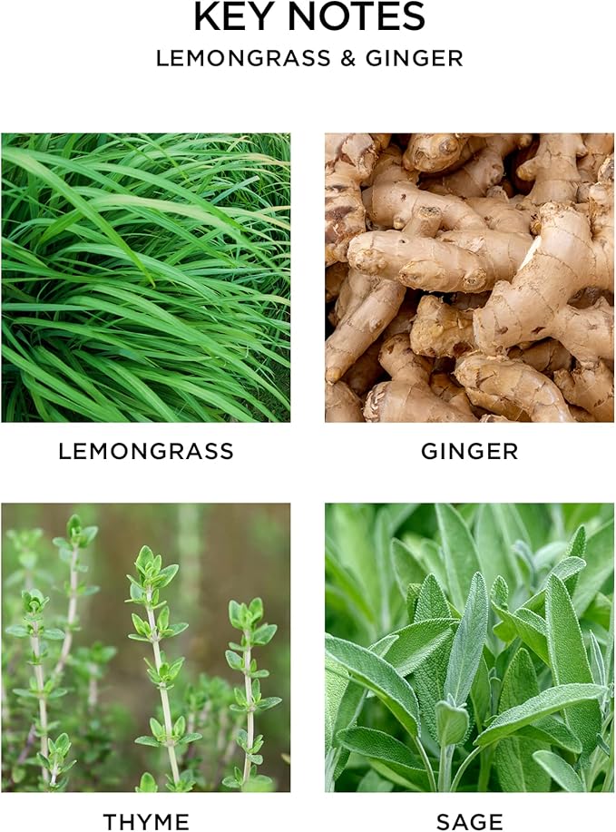 - FRESH - Vibrant lemongrass and aromatic ginger combine with an herbal infusion of eucalyptus, thyme, and sage in this sophisticated fragrance, creating a fresh and exhilarating mood for your environment.