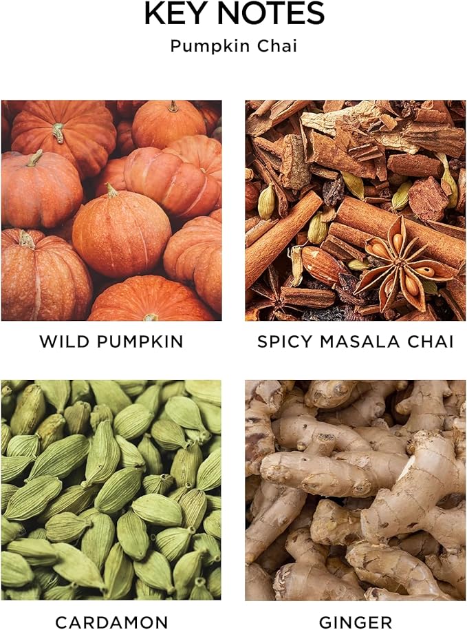 - WARM & SWEET GOURMANDS - Pumpkin Chai features an autumnal blend of wild pumpkin, spicy masala chai, cardamom, ginger, and cinnamon