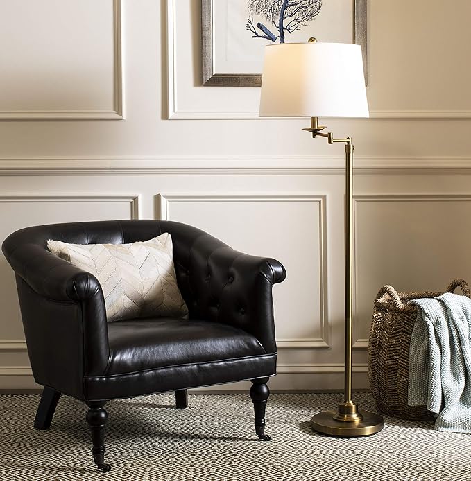 SAFAVIEH Lighting Collection Nadia Traditional Farmhouse Swivel Swing Arm Gold 64-inch Adjustable Height Living Room Bedroom Home Office Standing Floor Lamp (LED Bulb Included)
