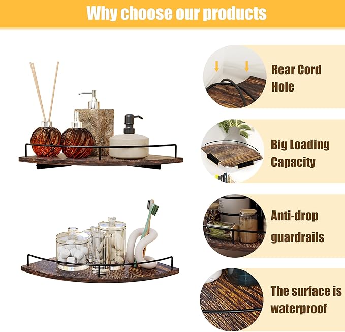 - SPACE-SAVING DESIGN: Corner-mounted floating shelves maximize unused wall space, perfect for displaying and organizing items in any room of your home