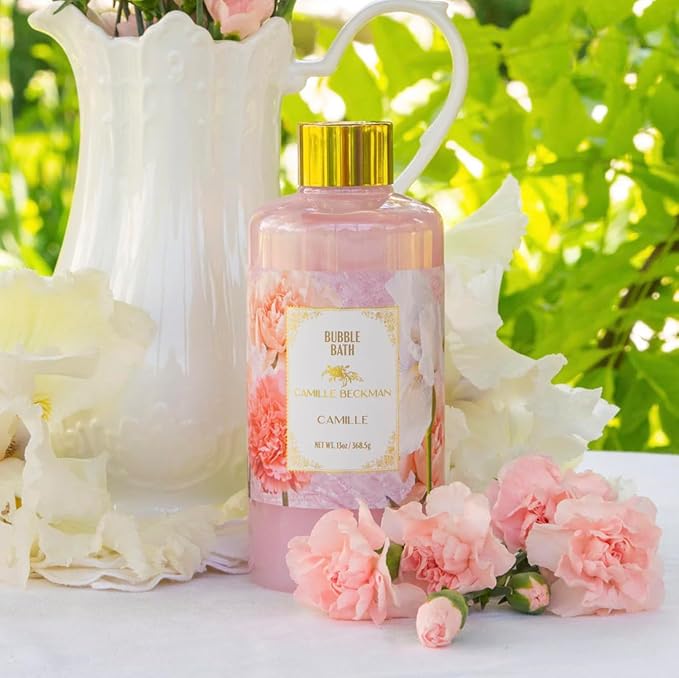 - Camille Beckman fragranced bubble bath cleanses without irritation or drying