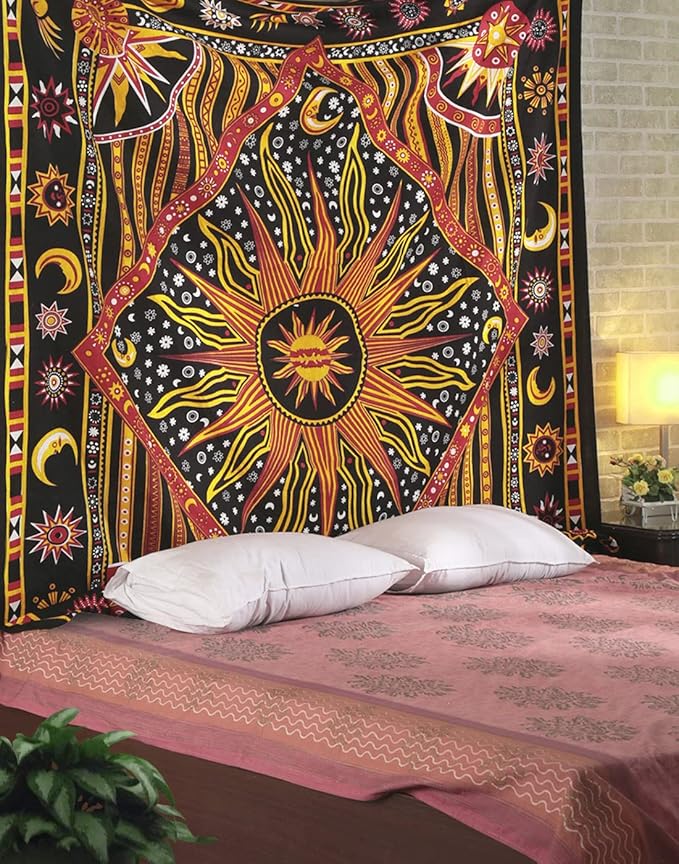 - Design: The tapestry features intricate Celestial Sun Moon Star Planet design, which adds a bohemian touch to any space. This Celestial tapestry is perfect for adding a touch of bohemian style to your living room, bedroom, meditation space, or outdoor gatherings. It is a versatile piece of decor that can complement any interior design style.