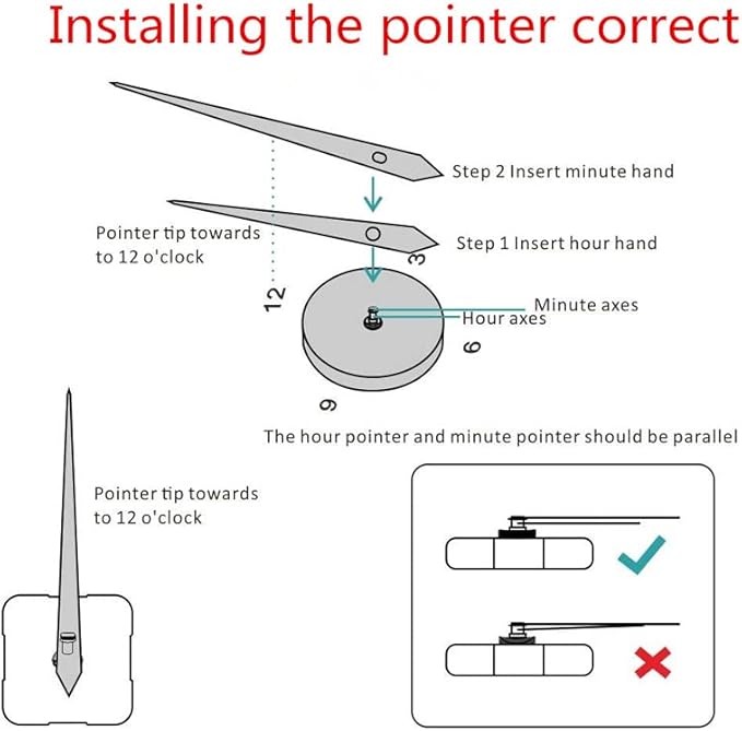 - 5.100% New Product ,Clock Surface Have a Protective Film,Please Tear Off After Installation.Note :Please don't install the hour pointer and minute pointer very tight,if not ,that will cause the clock does't move.