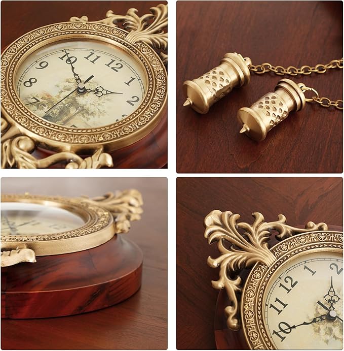 - DESIGN: Quartz Movement, Battery Operated. Two-Battery Independent Design, one for time, the other for the pendulum. You can un-install the pendulum battery if the pendulum makes you feel dizzy (For the safety of air transportation, 2*AA Batteries Not Included).