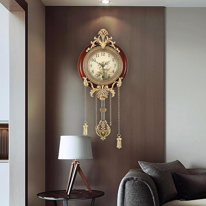 - MATERIAL: Made of Real Solid Wood and Wrought Iron. Analog Time Display. Swinging Pendulum, Scanning Second hands, Imported Mechanism, Long Lasting Guaranteed Life. Silent, for a Quiet Environment.