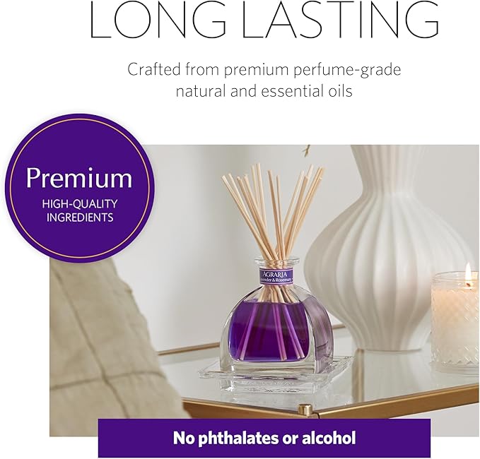 - Long Lasting Fragrance: Unlike many scented flower and reed diffuser sets with high alcohol content that evaporates faster, Agraria AirEssence flower and reed diffuser stick set is made with high quality perfume-grade oil fragrances that last 12 months or longer
