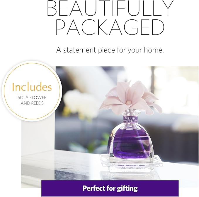 AGRARIA AirEssence Flower and Reed Diffuser Set, Hand Crafted Sola Flower Botanical Home Fragrance Diffuser, Scented Oil Reed Diffuser, Flower and Reed Diffuser Gift Set for All Occasions