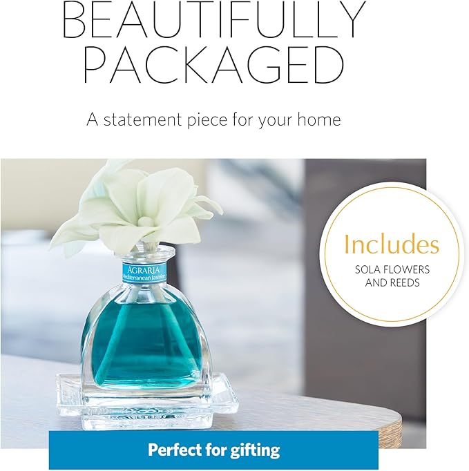 AGRARIA AirEssence Flower and Reed Diffuser Set, Hand Crafted Sola Flower Botanical Home Fragrance Diffuser, Scented Oil Reed Diffuser, Flower and Reed Diffuser Gift Set for All Occasions