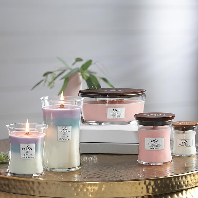 WoodWick Medium Hourglass Candle, Coastal Sunset Scent, Crackles as it burns, Premium Soy Blend Wax, 9.7oz, Perfect for gifting