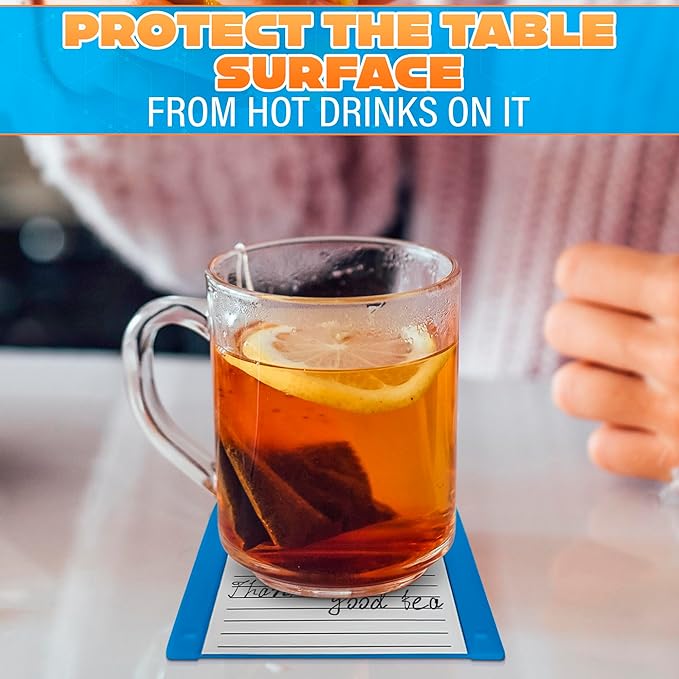 - You Will Receive: 6 cool coasters for drinks that are measured about 3.54'' x 3.54'' x 0.2'' in size. Our office desk coaster are flexible and include a space where you can write notes with a marker