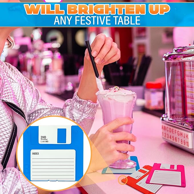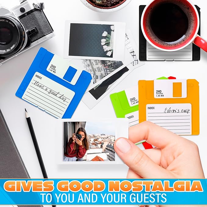 - Realistic Retro Desk Accessories: Our fun coasters are truly realistic and funny desk decor. The office coasters set of 6 fully mimics real retro disk design and adds 80s decor vibes to your workspace