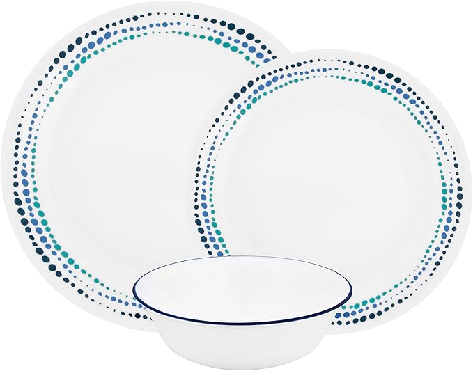 Corelle Ocean Blues Chip and Break Resistant Dinner Set for 4 Person, Blue, 12-Piece