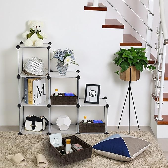 Posprica Woven Storage Baskets for Organizing, Small Baskets Cube Bin Container Tote Organizer Divider for Drawer, Closet, Shelf, Dresser, Set of 4(Brown)