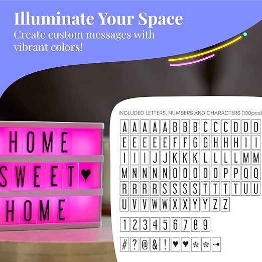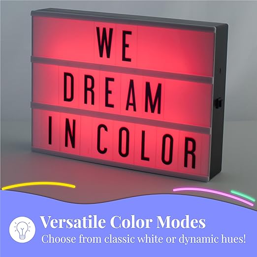 My Cinema Lightbox Cinema Light Box Letter Board - 12x9-Inch Light Up Signs with 100 Letters, Numbers, and Symbols - Neon Sign with White LED, RGB, and Color Freeze Mode for Home Decor