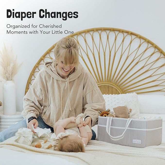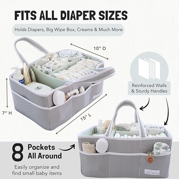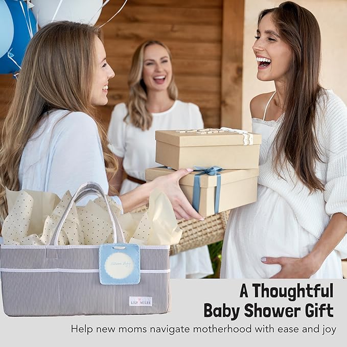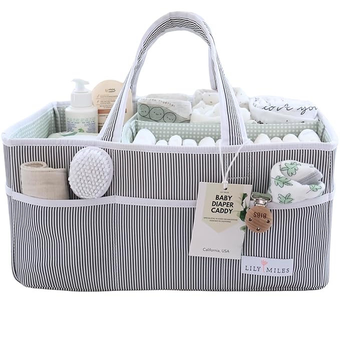 Lily Miles Baby Diaper Caddy - Large Organizer Tote Bag for Baby essentials Boy or Girl - Baby Shower Basket - Nursery Must Haves - Registry Favorites - Newborn Caddie Car Travel