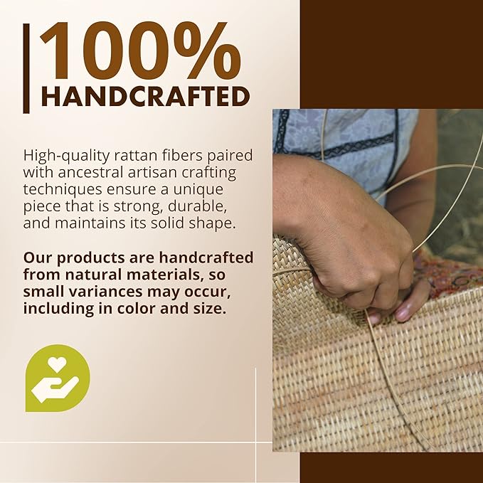 - HANDWOVEN WITH NATURAL RATTAN: High-quality rattan fibers paired with ancestral artisan crafting techniques ensure a unique piece that is strong, durable, and maintains its solid shape; Because our products are handcrafted from natural materials to create one-of-a-kind pieces, small variances may occur, including in color and size