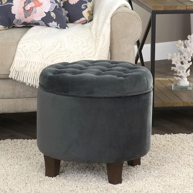 Homepop Home Decor | Upholstered Round Velvet Tufted Foot Rest Ottoman | Ottoman with Storage for Living Room & Bedroom | Decorative Home Furniture, Dark Gray Small