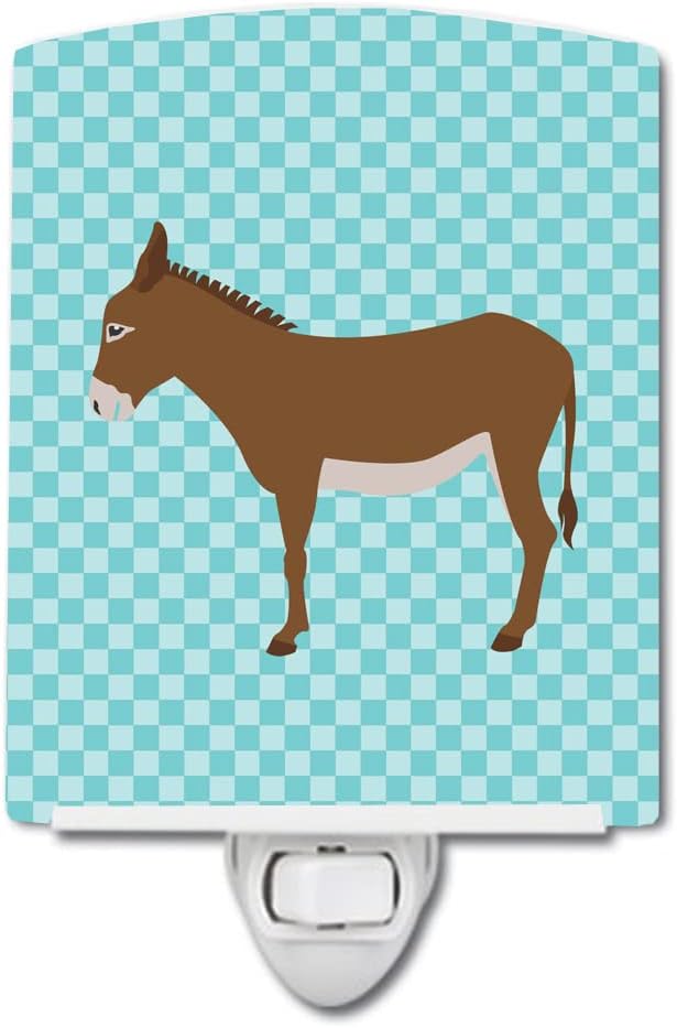 Caroline's Treasures BB8023CNL Cotentin Donkey Blue Check Ceramic Night Light Compact, UL-Certified, Ideal for Bedroom, Bathroom, Nursery, Hallway, Kitchen, 6x4x3, Multicolor