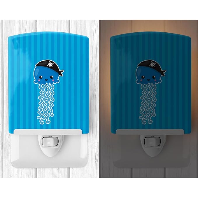 Caroline's Treasures BB8917CNL Nautical Pirate Jellyfish Blue #2 Ceramic Night Light Compact, UL-Certified, Ideal for Bedroom, Bathroom, Nursery, Hallway, Kitchen, 6x4x3, Multicolor