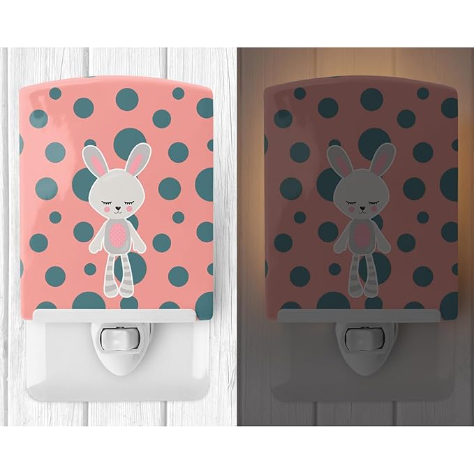 Caroline's Treasures BB9182CNL Rabbit Ceramic Night Light Compact, UL-Certified, Ideal for Bedroom, Bathroom, Nursery, Hallway, Kitchen, 6x4x3, Multicolor