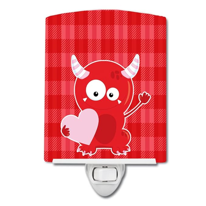 Caroline's Treasures BB9123CNL Cupid Monster Angel on Plaid #3 Ceramic Night Light Compact, UL-Certified, Ideal for Bedroom, Bathroom, Nursery, Hallway, Kitchen, 6x4x3, Multicolor