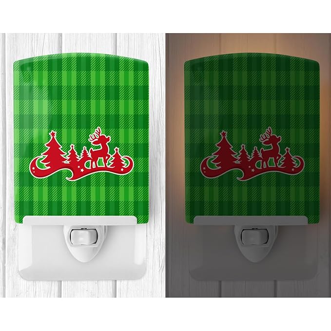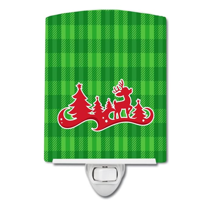 Caroline's Treasures BB6973CNL Christmas Tree Reindeer Green Ceramic Night Light Compact, UL-Certified, Ideal for Bedroom, Bathroom, Nursery, Hallway, Kitchen, 6x4x3, Multicolor