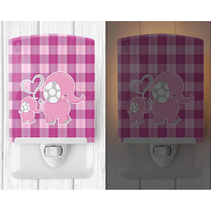 Caroline's Treasures BB6953CNL Elephant and Baby Ceramic Night Light Compact, UL-Certified, Ideal for Bedroom, Bathroom, Nursery, Hallway, Kitchen, 6x4x3, Multicolor