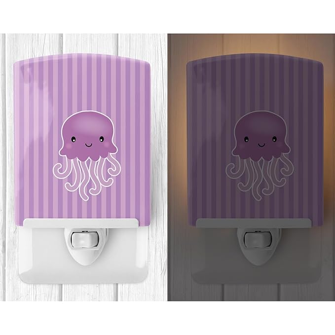 Caroline's Treasures BB7122CNL Jellyfish Ceramic Night Light Compact, UL-Certified, Ideal for Bedroom, Bathroom, Nursery, Hallway, Kitchen, 6x4x3, Multicolor