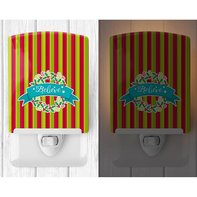 Caroline's Treasures BB6975CNL Christmas Wreath Believe Ceramic Night Light Compact, UL-Certified, Ideal for Bedroom, Bathroom, Nursery, Hallway, Kitchen, 6x4x3, Multicolor
