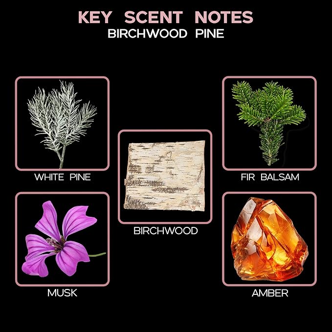 LOVSPA Birchwood Pine Reed Diffuser Set - Balsam Fir, White Pine & Amber Holiday Scented Non-Toxic Oil Reed Diffuser - Made in The USA