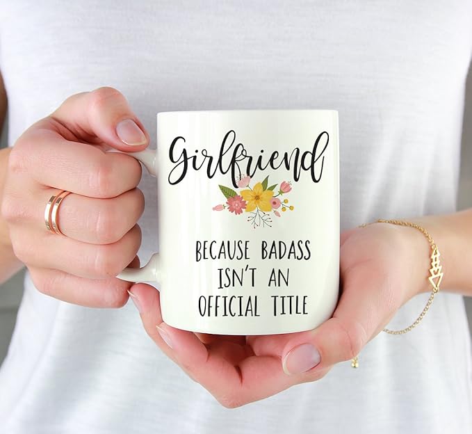Andaz Press 11oz. Coffee Mug Gag, Girlfriend Because Badass Isn't an Official Title, Floral Graphic, 1-Pack, Funny Witty Coffee Cup Birthday Christmas Ideas