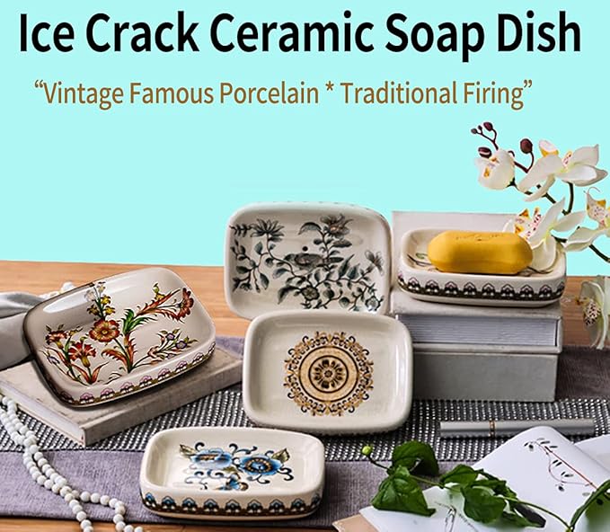 - ๐๐ฅ๐๐ ๐๐ง๐ญ ๐๐๐ญ๐ก๐ซ๐จ๐จ๐ฆ ๐๐๐๐๐ฌ๐ฌ๐จ๐ซ๐ข๐๐ฌ : Stylish Bathroom Soap Dish Great for Round Soap, Square Soap, Rectangular Soap, All Kinds of Handmade Soap etc.The Top-Grade Colored Glaze Ice Crack Colorful Pattern Soap Holder Look Very Noble, and can Match Variety Kitchen And Bathroom Wash Basin Decor, It is Elegant Bathroom Accessories