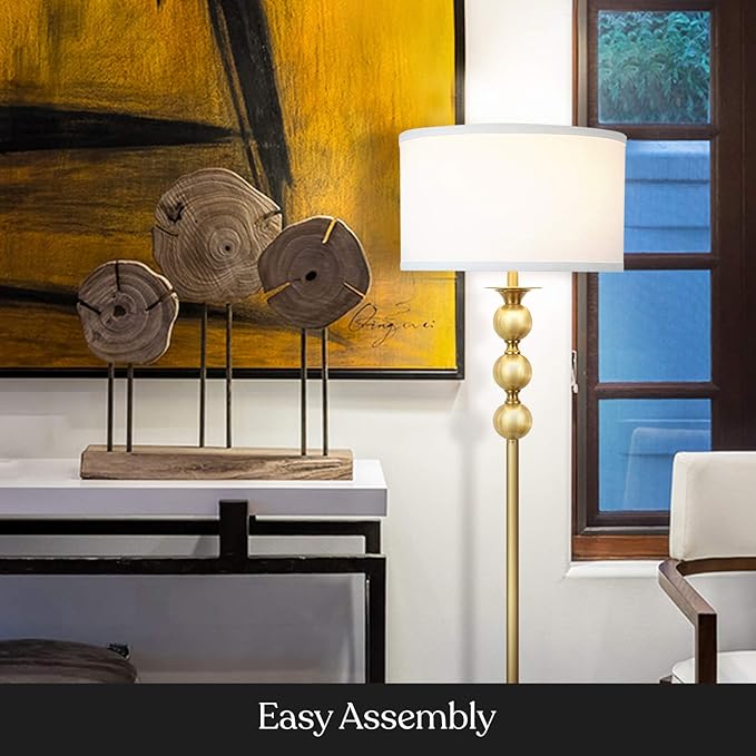 - Stylish Floor Lamp With Drum Lamp Shade: The Brightech Riley floor lamp has a beautiful design that will have all your guests talking about it nonstop. Thanks to its elegant gold finish, neutral linen lamp shade, and three knot poles, you can match it effortlessly with modern, contemporary, mid-century modern, farmhouse, boho, and other décor styles.