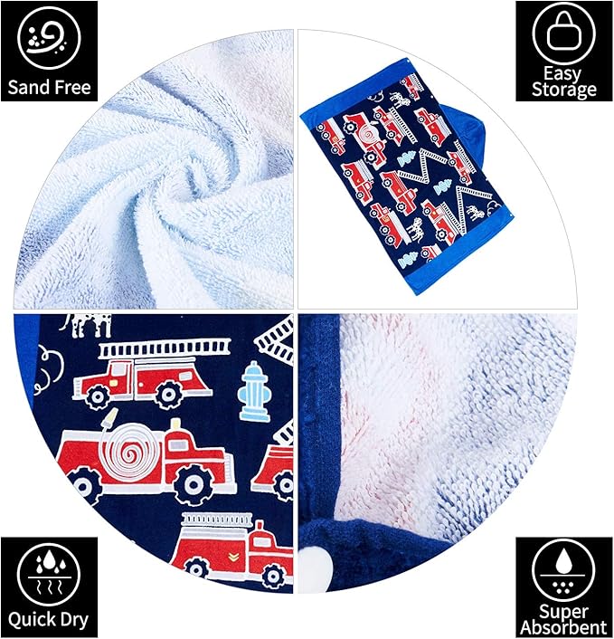 - ?Super Absorbent & Machine Washable??The beach towel for kids is extremely absorbent. The cotton bath towel will quickly absorb the moisture on kid's body surface to keep him warm. Avoid kids getting sick from the water. Make sure kids enjoy fun and safety with our hooded towels for kids. Washing method: Machine washable and gentle cycle.