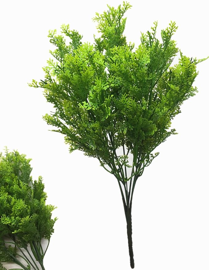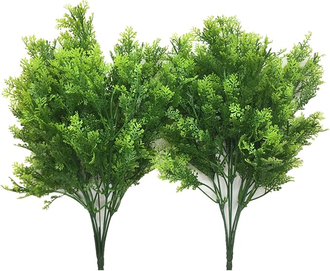 CATTREE Artificial Shrubs Bushes, Plastic Fern Leaves Simulation Faux Grass Realistic Fake Plants Wedding Indoor Outdoor Home Garden Verandah Kitchen Table Centerpieces Arrangements Decoration 2 pcs