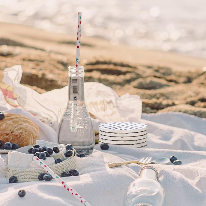 - Non-Slip: Stone coasters equipped with a cork backing to prevent slipping, it stays securely in place on any table. Unlike silicone, fabric, or other materials, the ceramic surface holds cups steady, ensuring stability for different types of drinks