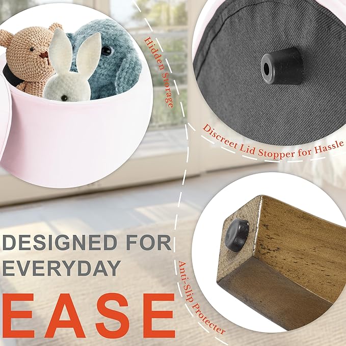 - OTTOMAN WITH STORAGE FOR LIVING ROOM: Weighing at 14.3 lbs our Round Ottoman Storage supports a capacity of up to 250lbs